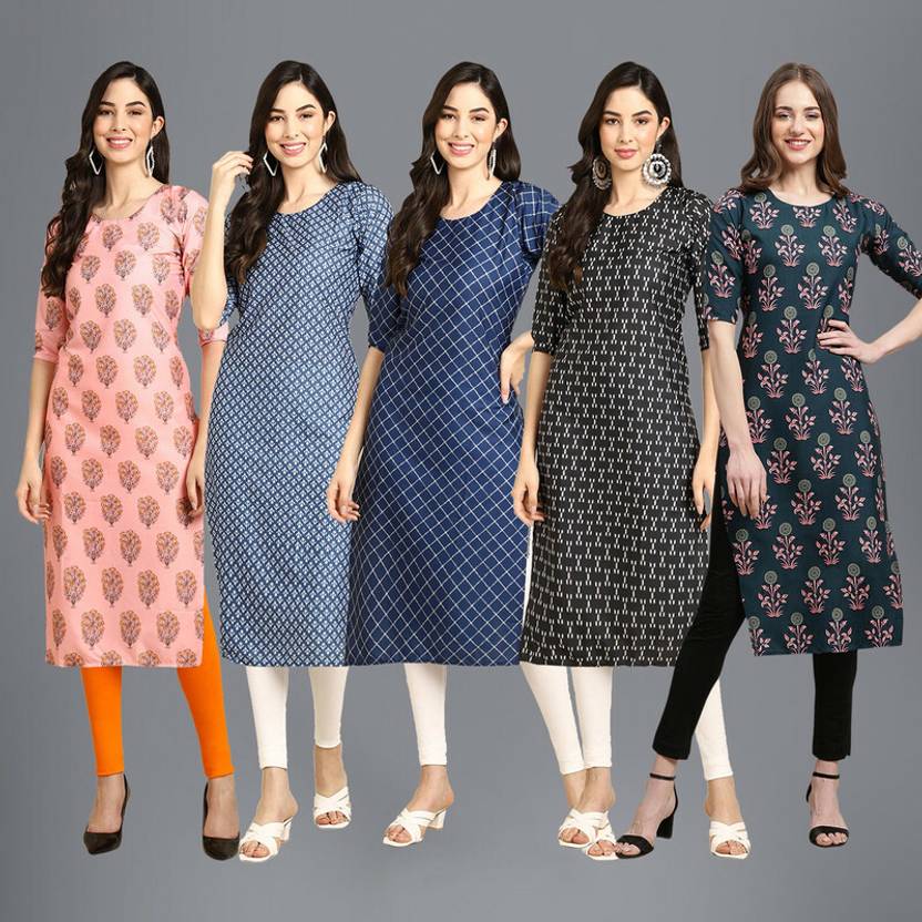 1 Stop Fashion Pack of 5 Women Printed Crepe Straight Kurta (Multicolor)