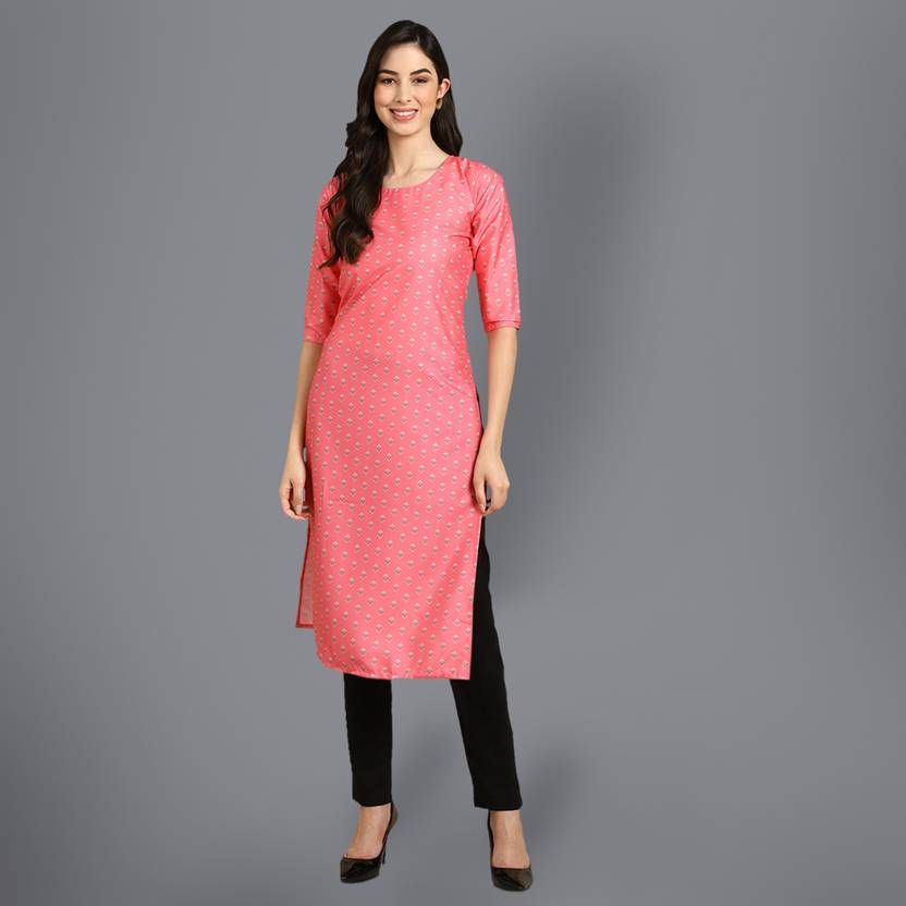 1 Stop Fashion Women Printed Straight Kurta (Pink)