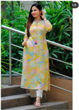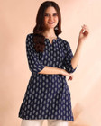 Round-neckline and ¾ length sleeves for a relaxed fit. Features contrast print, lightweight kurta woven in a soft and premium crepe fabric for everyday wear,Classic colour with beautiful Ethnic Motif ...more