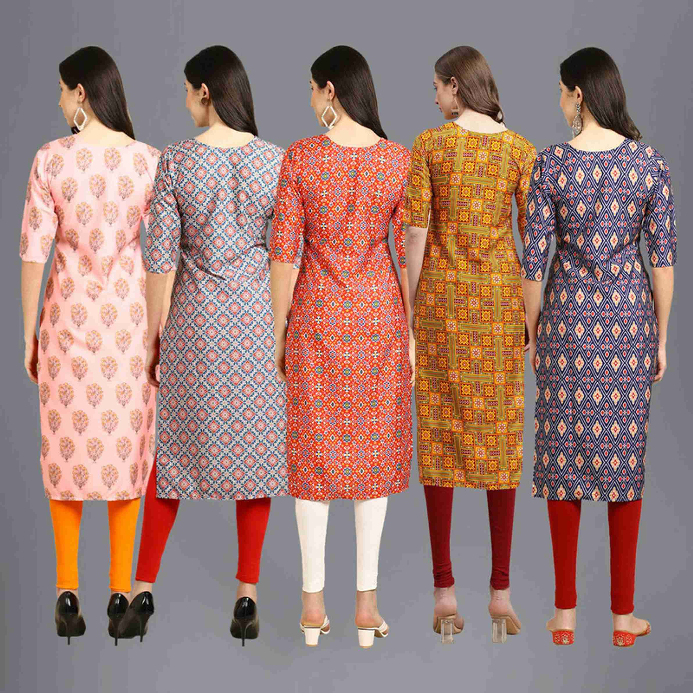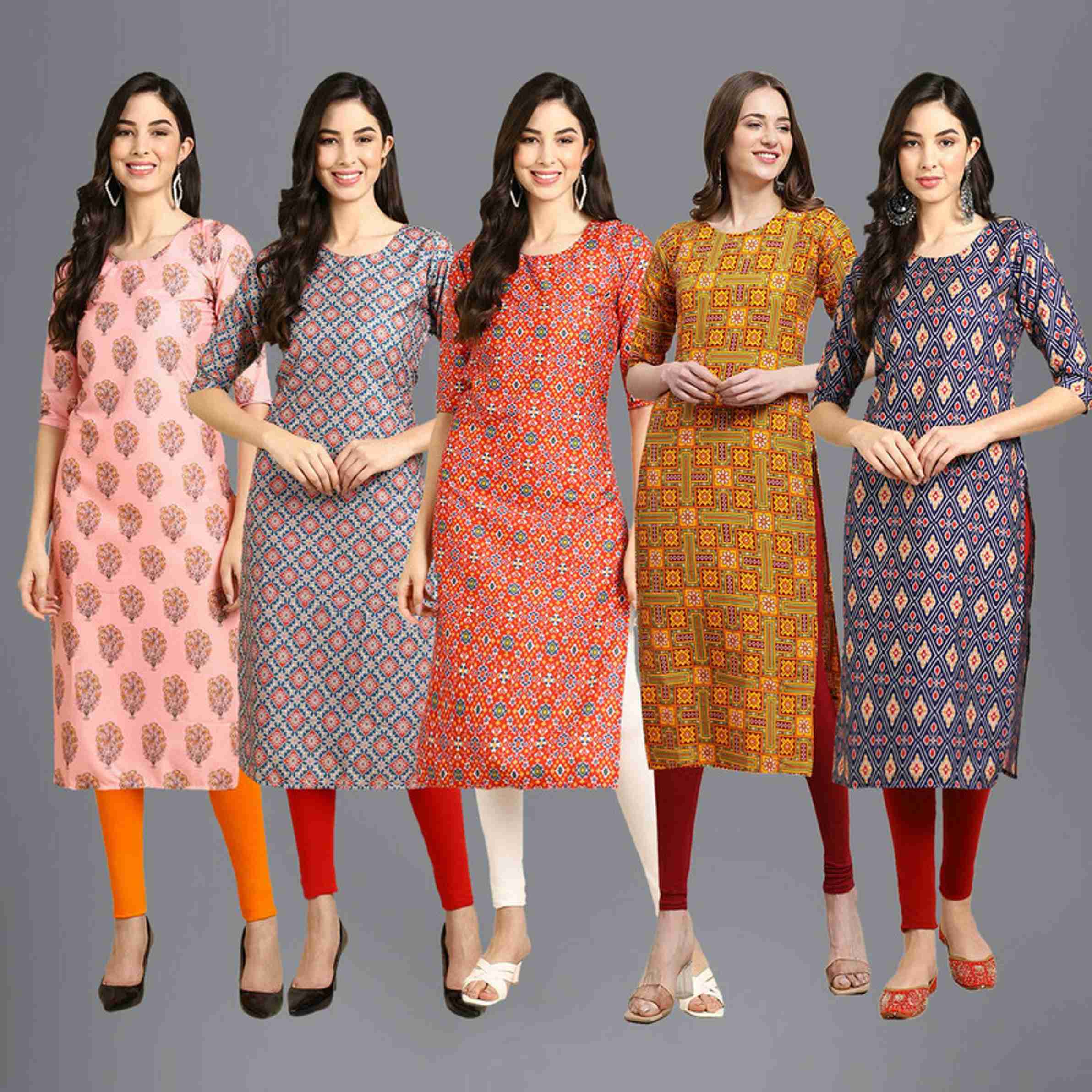 Pack of 5 Women Printed Crepe Straight Kurta (Multicolor)