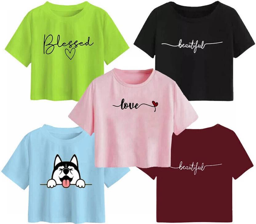 Girls Casual Cotton Blend Crop Top (Multicolor, Pack of 5)