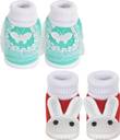 Neska Moda 12 To 18 Month NonSlip Set of 2 Pair Toddler Baby Unisex Soft Cotton Rabbit Face Booties (Toe to Heel Length - 13 cm, Red, Mint)