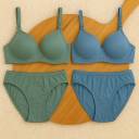 15 Plus Everyday Comfort Cotton Blend Bra & Panty Set – Pack of 3 (Blue, Green, Peach) Product Description: Experience effortless comfort and natural style with our Everyday Comfort Cotton Bra & Panty Set. This pack of three includes beautifully coordinated colors — blue, sage green, and peach — crafted from soft, breathable cotton fabric that keeps you fresh and supported all day long. Perfect for daily wear, these sets combine minimalist design with a flattering fit. Features: Set Includes: 3 bras + 3 matching panties Fabric: Premium cotton blend – soft, stretchable, and gentle on skin Colors: Blue, Sage Green, Peach Bra Type: Lightly padded with smooth molded cups for seamless shaping Panty Type: Mid-rise full coverage for all-day comfort Straps: Adjustable shoulder straps for a personalized fit Breathable Design: Ideal for everyday wear and all seasons Care Instructions: Machine wash cold, line dry; do not bleach Why You’ll Love It: Designed for women who value both comfort and elegance, this essential trio offers the perfect blend of style and practicality. The soft hues and smooth finish make it a must-have for your daily lingerie collection.