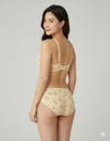 Cups: Molded or padded, Straps: Shoulder bands (can be adjustable or fixed)., Closure: a hook-and-eye system at the back., In Panty:Waistband: The elastic band at the top for grip and comfort., Front Panel: Provides coverage and design (matches the bra print)., Gusset (Crotch Lining): A soft inner fabric layer for hygiene and comfort.