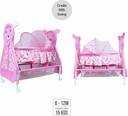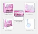 1st Step Baby Swing Cradle Jhula with Mosquito Net and Storage Basket for New Born Baby (Pink)