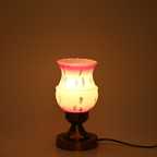 1st Time Decorative Metal Color Table Lamp With Hand Decorative Colorful Glass Shade Table Lamp (23 cm, Red, Gold)
