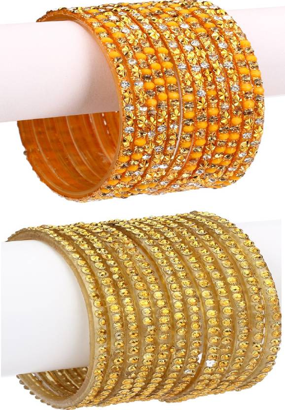 Let's Start Your Make Over From Your Hands, Bingo Now 1st Time Bring A Unique High Quality Bangles Set Collection For Your Special Occasion Festival And Party. Noworry For Matching, Quality & Attraction, These Are Inbuild Features In Our New Collection. Each Bangle Made & Decorate One By One With Expert Hands Seperately, Using High Quality Material Which Is In latest Trend And Fashion. These Beautiful Bangles on Any Lady Wrist With Increase Her Beauty. These Bangles Made From Glass Which Is Also Good For Health According To Ayurveda. Glass bangles Sweet Sound Relax Everyone Mind Equal To Meditation. In Our New Collection We Design Every Set After Many Research Accrding To New & Latest Trend Of Fashion. A very Unique High Collection Should Add In Your Unique Accessories.