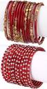 Combo Of Designer Ornamented Colorful Traditional Glass Bangle/Kada Set-Zf74