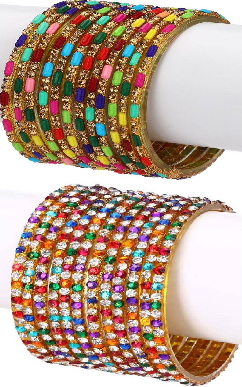Let's Start Your Make Over From Your Hands, Bingo Now 1st Time Bring A Unique High Quality Bangles Set Collection For Your Special Occasion Festival And Party. Noworry For Matching, Quality & Attraction, These Are Inbuild Features In Our New Collection. Each Bangle Made & Decorate One By One With Expert Hands Seperately, Using High Quality Material Which Is In latest Trend And Fashion. These Beautiful Bangles on Any Lady Wrist With Increase Her Beauty. These Bangles Made From Glass Which Is Also Good For Health According To Ayurveda. Glass bangles Sweet Sound Relax Everyone Mind Equal To Meditation. In Our New Collection We Design Every Set After Many Research Accrding To New & Latest Trend Of Fashion. A very Unique High Collection Should Add In Your Unique Accessories.