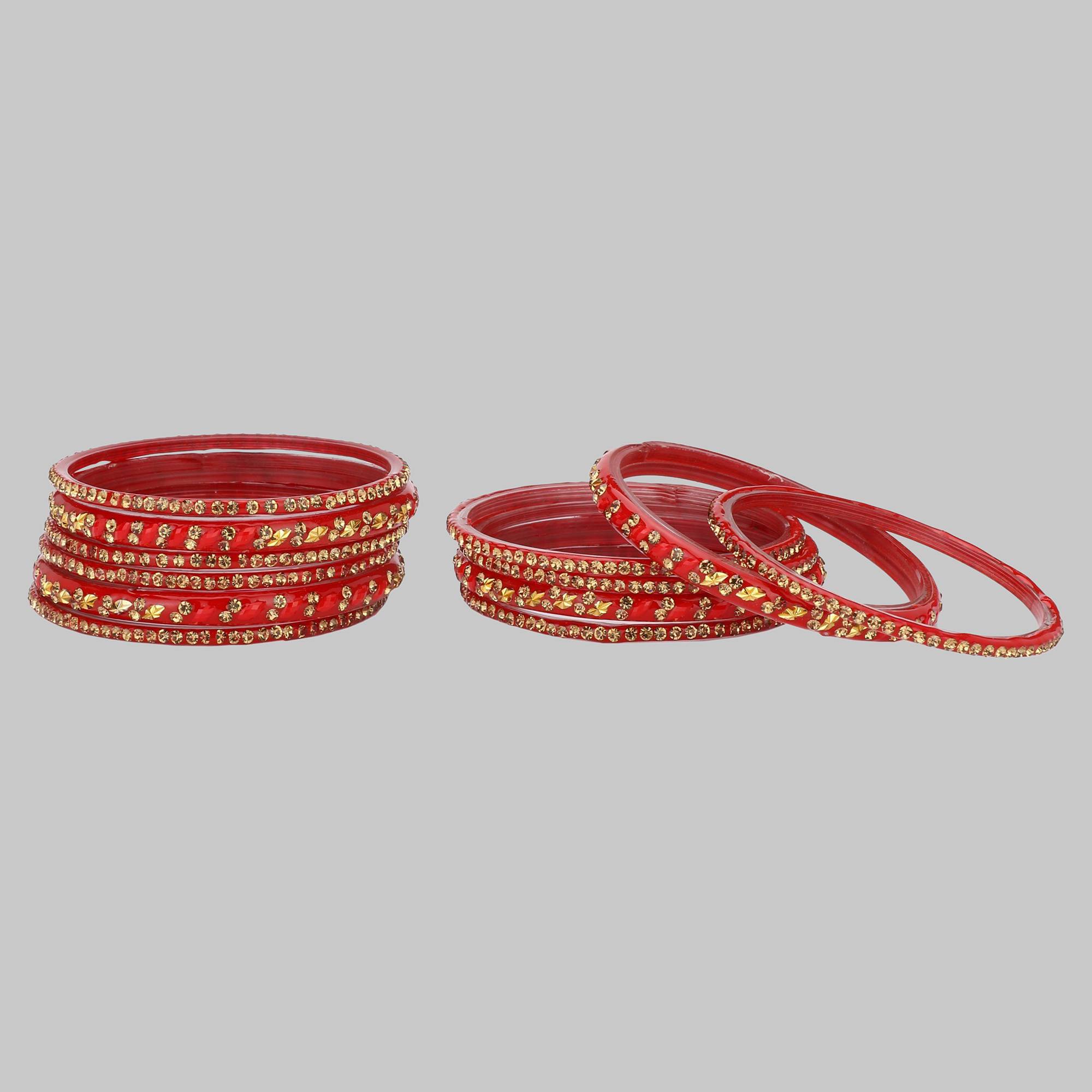 Designer Colorful Collection Red & Golden 12 Fashion Bangle Set Ornamented With Exclusive Beads-GA1.d_2.8