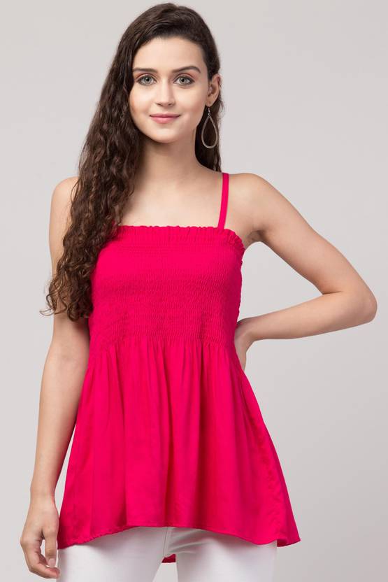 2 Pc Collection Casual Sleeveless Solid Women Pink Top