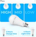 Featuring three light modes – high brightness, mid brightness, and low brightness – this rechargeable inverter bulb provides adaptable lighting solutions for any situation. This versatility allows you to select the appropriate brightness for different needs, enhancing comfort and efficiency in various environments. You can easily adjust the lighting to match your needs, whether for reading, relaxation, or emergencies.