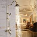 Brass Gold Shower System, 3 in 1 Wall Mixer with Adjustable Height Shower and Hand Shower, 3 Control Setting.