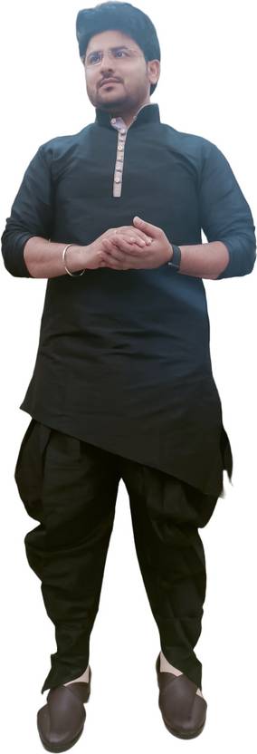 (B) BLACK SLANT SLIT K BUTTON SILVER PIPE BLACK SALWAR DHOTI