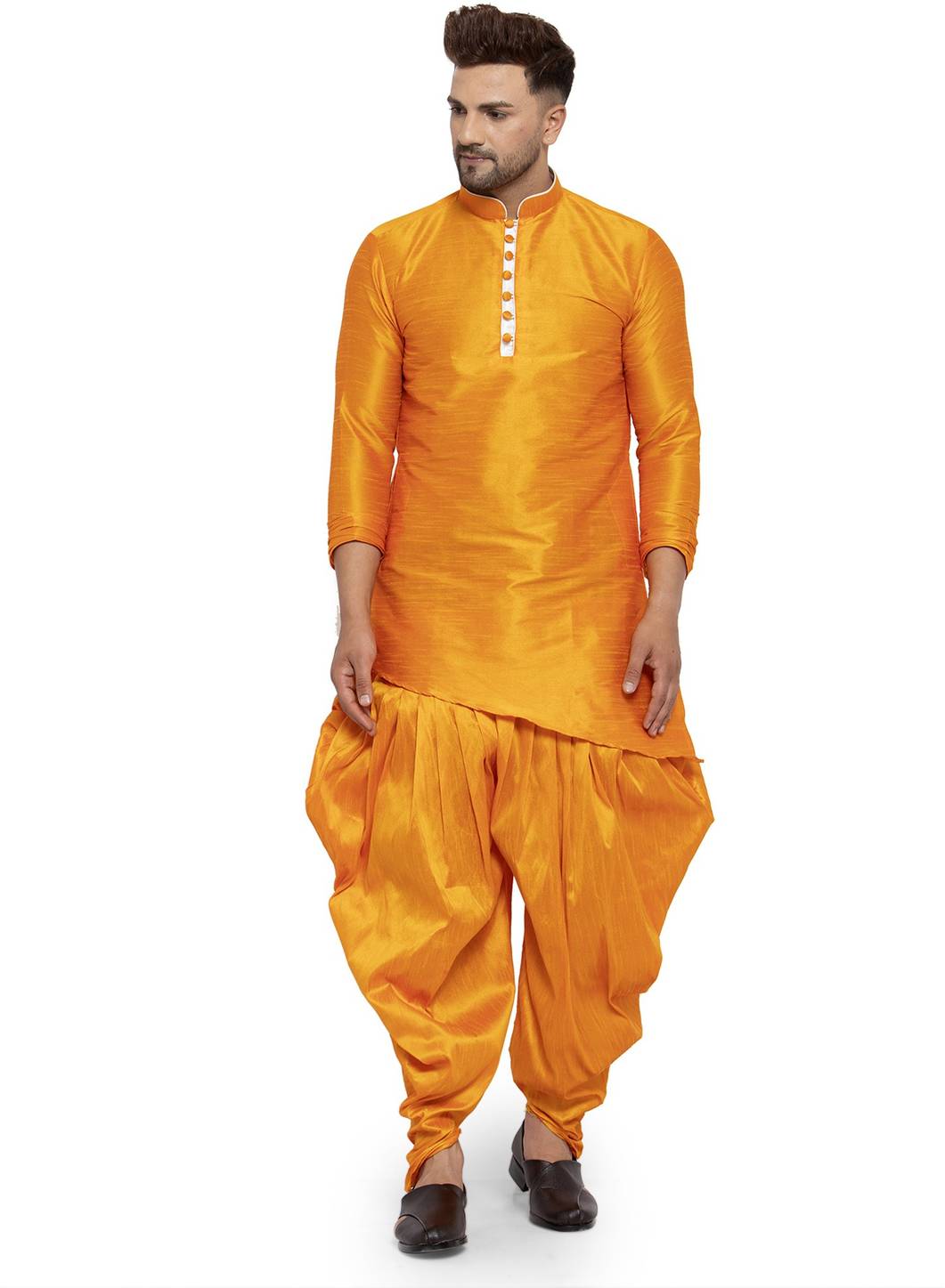 Yellow Slant Slit K Button Yellow Salwar Dhoti