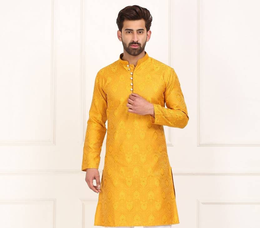 26 i as a brand brings you quality and affordability.We take pride in our commitment to maintain quality standards in each piece manufactured by us. This special piece from 26 i stands out because of its stylish design. The Kurta is made up of Jacquard Silk fabric. This is a single piece of Kurta.