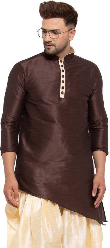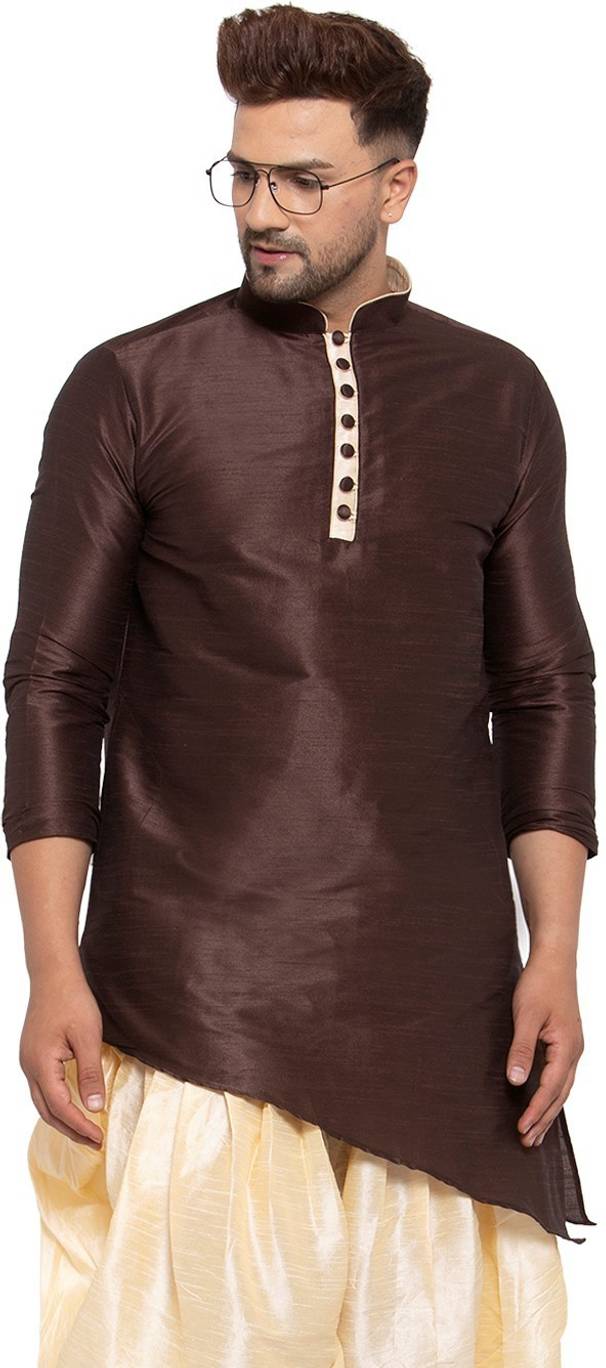 26 i Men Solid Asymmetric Kurta (Brown)