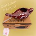 This Jal Neti pots is made up of ceramic & its Size: 225 Approx.Jal neti pot is a device used for irrigating the nasal passages.Neti helps to re-program the body's natural mechanisms against respiratory complaints including sore throats, coughs, postnasal drips etc.The Jal Neti pot used with a saline solution has been shown to be an effective treatment for hay fever, sinusitis, and other nasal conditions.