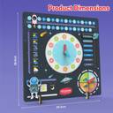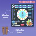 Aditi Toys all-in-one daily learning board is a fun and educational tool designed to teach young children about time, dates, days of the week, months, seasons, and weather. Featuring a vibrant space-themed design with UV-printed graphics, it includes interactive movable parts like sliders, spinning wheels, and rotatable clock hands that promote hands-on learning and improve memory, coordination, and observation skills. Made from durable, child-safe MDF wood with no loose pieces, it's perfect for independent, Montessori-style learning. Ideal for toddlers and preschoolers, this engaging board encourages routine building, number and letter recognition, time-telling, and seasonal awareness making it a thoughtful and lasting gift for home or classroom use.