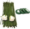 11.75 Inch Dark Green Floral Stem Wire Crafting Floral Paper Wrapped Wire for Artificial Flowers Making, Plant Stub Stem- 100 pc Green Wire & 4pc Green Tape