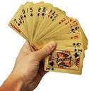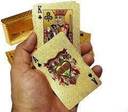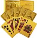 Golden playing cards add a touch of luxury and elegance to the traditional deck, transforming the act of playing cards into a glamorous and sophisticated experience. Crafted with meticulous attention to detail, these cards are not only functional but also serve as exquisite pieces of art. The cards are typically adorned with intricate golden designs, featuring ornate patterns, filigree, and embellishments that showcase the craftsmanship involved in their creation. The golden sheen adds a regal and opulent feel, making these cards stand out from their conventional counterparts. Whether used for casual games with friends or as a collector's item, golden playing cards are a testament to the fusion of tradition and extravagance. The metallic luster of the cards catches the light, creating a mesmerizing effect that enhances the overall visual appeal. The touch of gold elevates the playing experience, making it a statement of refined taste and style. These cards often come in a premium box or case, adding to the overall presentation and ensuring that they are protected when not in use. The durability of the cards is usually maintained, allowing for extended use without compromising on quality. Golden playing cards are not just a game accessory; they are a symbol of prestige and a conversation starter. Whether displayed as a decorative piece in a home or used for a high-stakes game, these cards exude a sense of exclusivity and sophistication, making them a unique and memorable addition to any card player's collection.