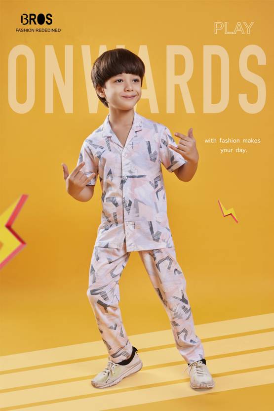 3BROS Boys Printed White Night Suit Set