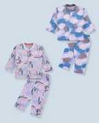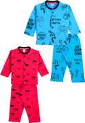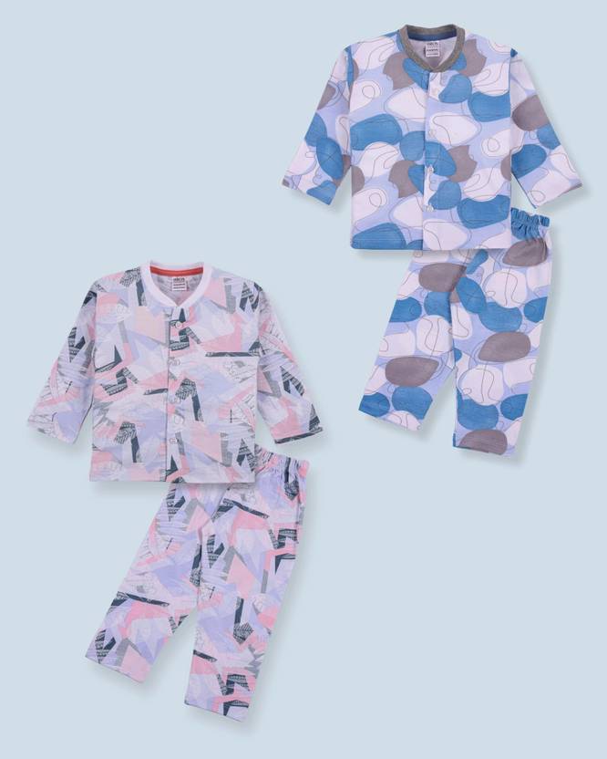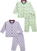 3BROS Kids Nightwear Baby Boys & Baby Girls Printed Cotton (White Pack of 2)