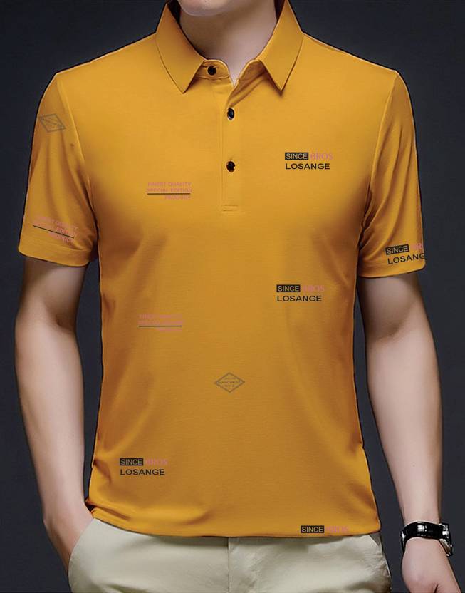 3BROS Printed Men Polo Neck Gold T-Shirt