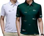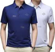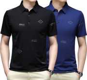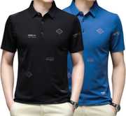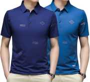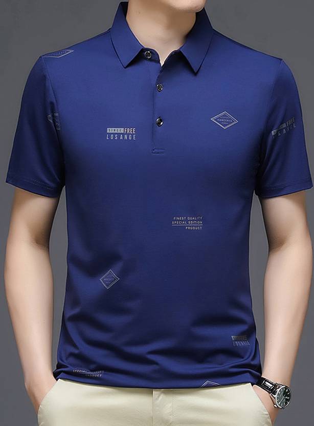 3BROS Printed Men Polo Neck Navy Blue T-Shirt