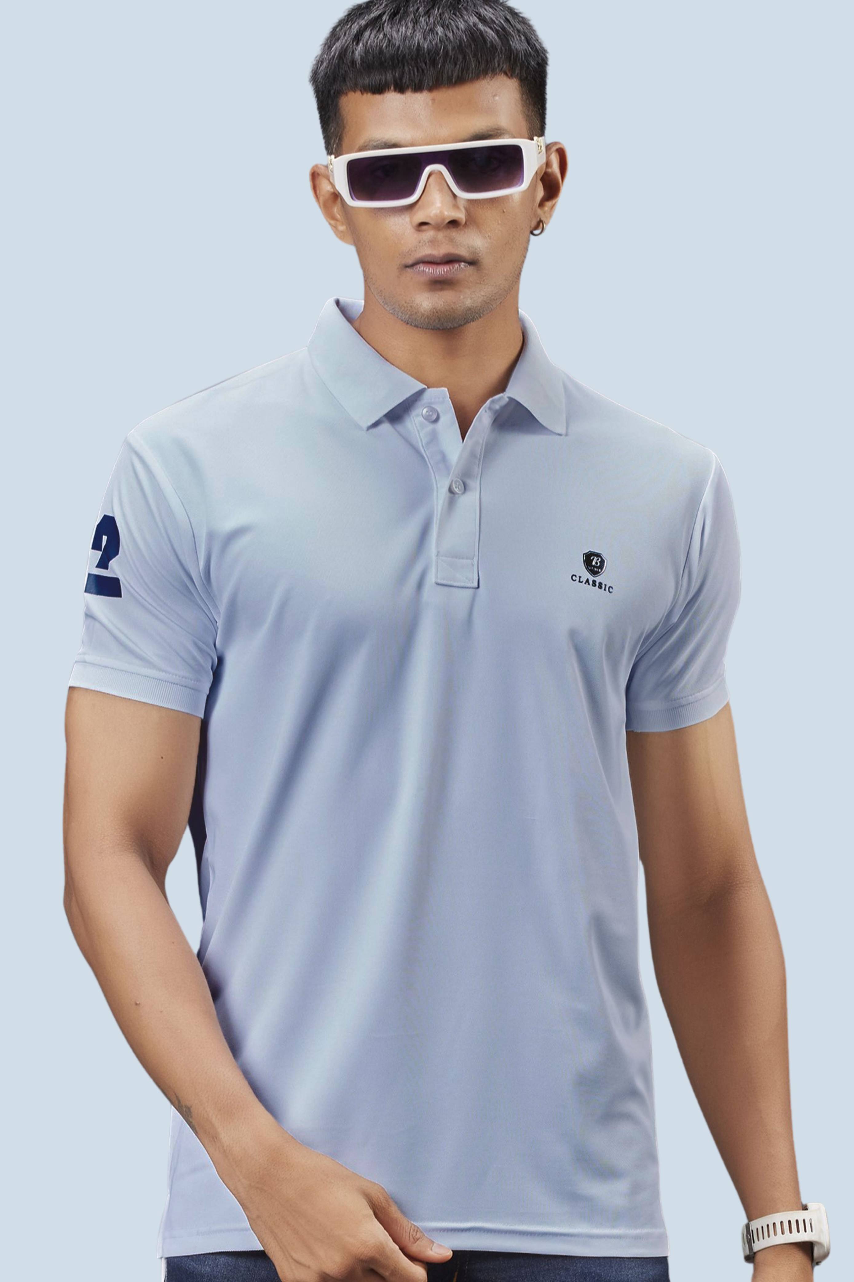 3BROS Men Solid Polo Neck Polyester Light Blue T-Shirt