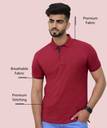 3BROS Solid Men Polo Neck Maroon T-Shirt