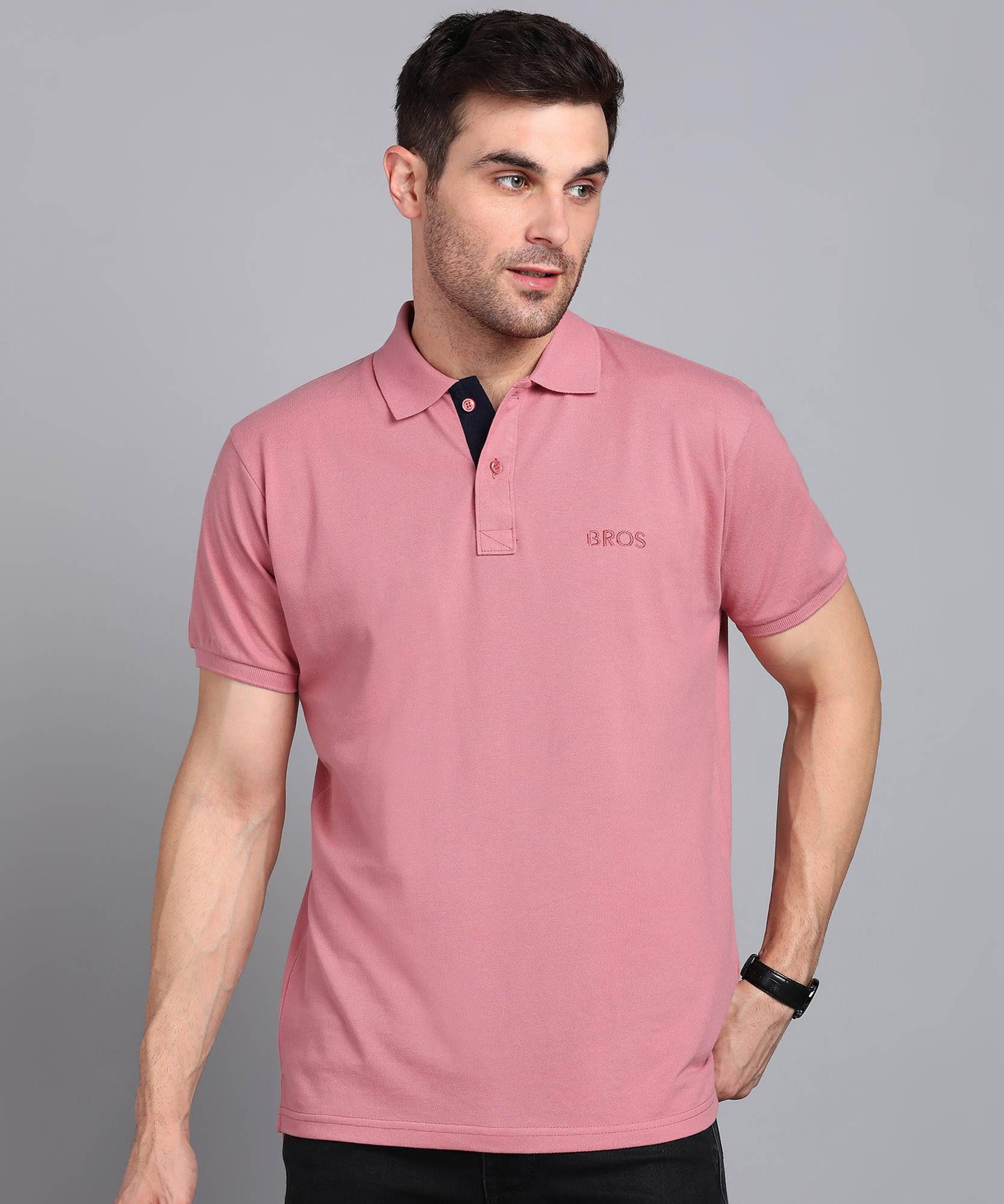 3BROS Solid Men Polo Neck Pink T-Shirt