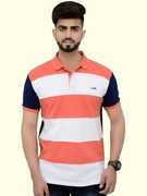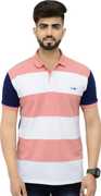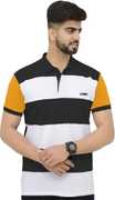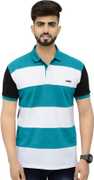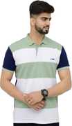 3BROS Striped Men Polo Neck Green T-Shirt