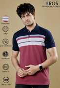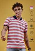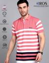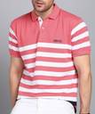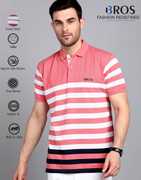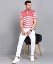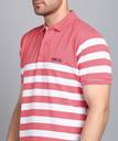 3BROS Striped Men Polo Neck Pink T-Shirt