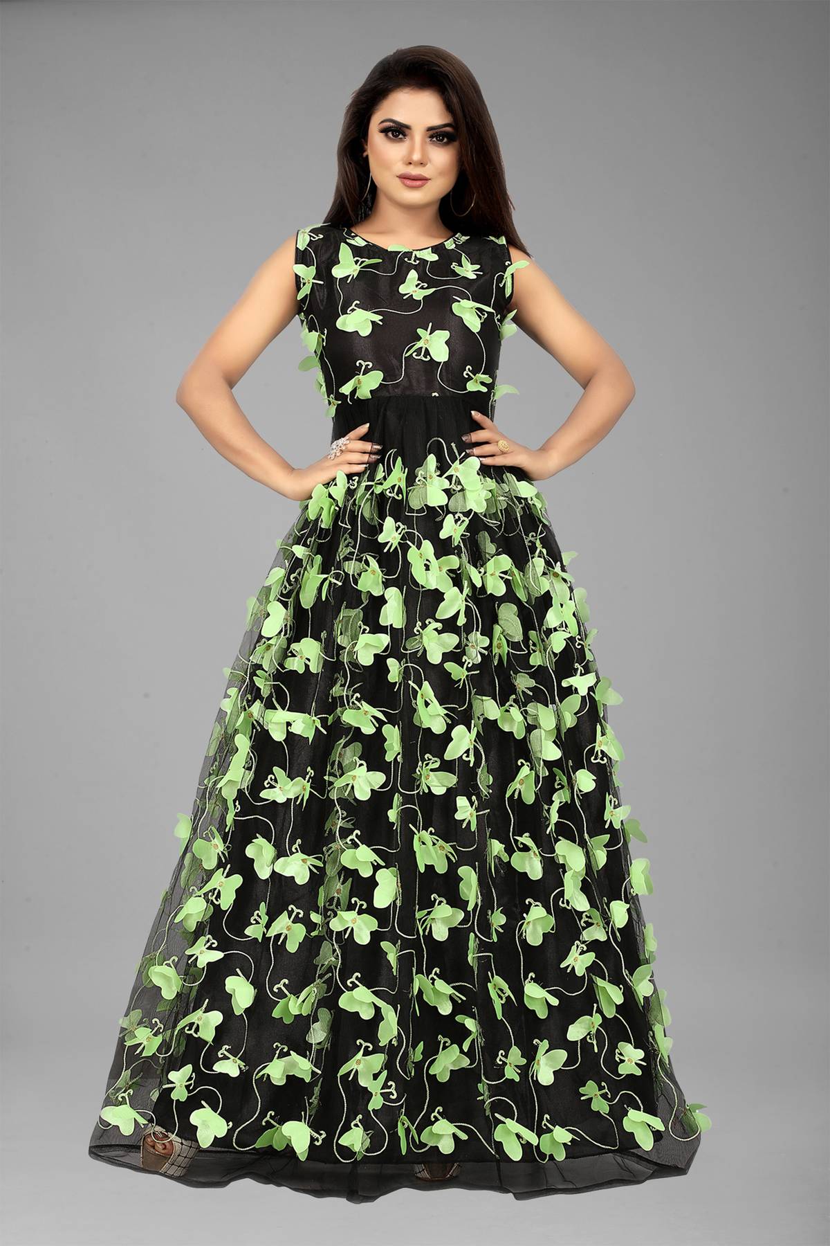 THE SPARKLE team made offer high quality Range of Gowns that is designs by our team of creative professionals and at the same time perfect mix of modern patterns and contemporary designs Because of Fashion and style always depends on good color and fantastic combination of shades so We are glad to Introduce our Beautiful and Elegance Floor Length semi-stitched Ball Gown which is Embellished with Fancy Abstract over net Fabric. This Semi-Stitched Gown can be Fit as per your Requirement Having Beautiful Color and Attractive Designed Fabric for the Gown. Gown is Crafted with Butterfly over Net Fabric that suits you Best. All of them Together will make your look more Attractive and eye catching. Grab this class of crafting and wear it as per your choice at any occasion. This Ball Flared Gown can be a perfect gift for your loved ones
