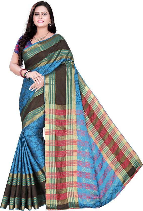 Blouse Fabric : Cotton Silk, Saree Length : 5.30 Mtr, Saree Width : 42 Inch, Blouse Work : Same as Saree, Saree Fabric : Cotton Silk, Blouse Length : 0.70 Mtr, Saree Work : Square with Striped Design