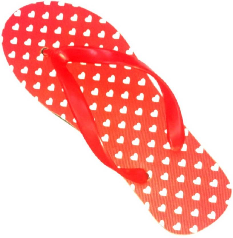 3C Non-Skid Poly-Urethane Flip Flops and Bathroom Slippers Designer Red Hearts Women Flip Flops (Red, Orange , 5)