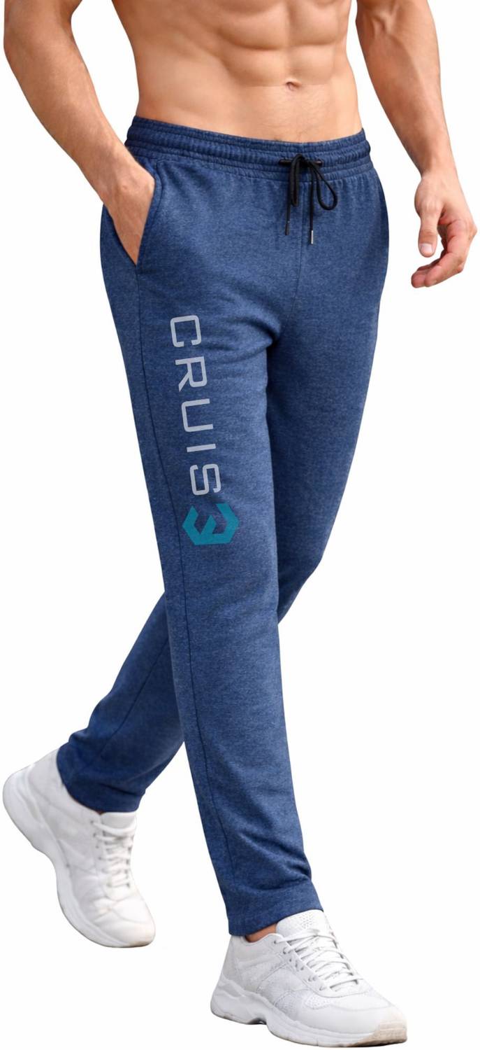 These men's track pants are designed for comfort and style, featuring a solid blue color with 'CRUSIE' typography on the RIGHT leg. They come with a drawstring waist for an adjustable fit and convenient side pockets. Ideal for workouts, lounging, or casual outings, these track pants offer both functionality and a modern aesthetic. Compatible products include: t-shirts, hoodies, sweatshirts, athletic shoes, casual sneakers, gym bags, and sports accessories.