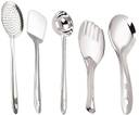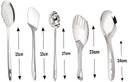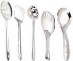 Material: Stainless Steel Size:1 Spatula, 1 Skimmer,1 Ladle,1 Slotted Turner,1 Flex Turner Elegant design and a Long Term Valuable Product Thickness 1.2mm , 1 year Warranty A must-have set of serving and cooking tools for every kitchen. Unique combination offers exceptional versatility for everyday convenience. Whether hung from a hook or tossed in a drawer, the handy tool will quickly become a go-to favorite for getting the job done.