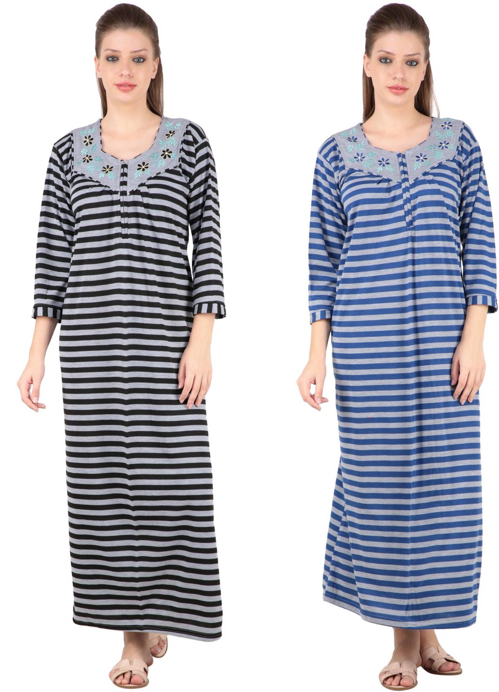 Natkhat Radha Winter Wear Woolen Hosiery Multi Color Long Nighty Pack Of 2