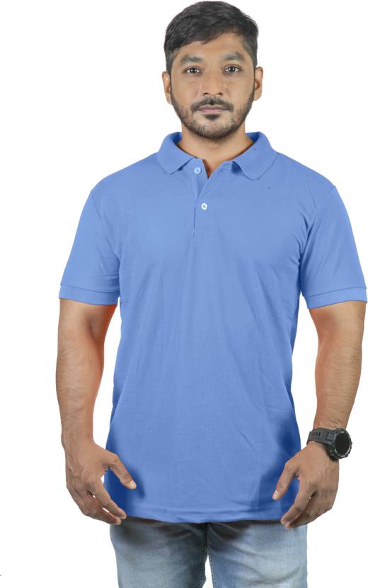3tee Solid Men Polo Neck Light Blue T-Shirt