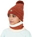 Winter Cap for Women and Girls/Winter Soft Warm 1 Set Snow Proof Knitted Ball Cap (Inside Fur) Woolen Beanie Cap with Scarf Muffler for Women Girl