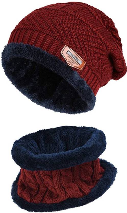 Ultra Soft Unisex Woolen Beanie Cap Plus Muffler Scarf Set for Men Women Girl Boy - Warm, Snow Proof(Marron)