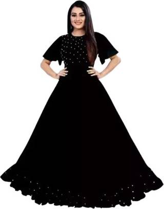 Rayon Blend Stitched Anarkali Gown (Black)