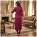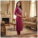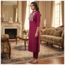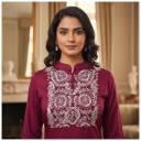 This elegant pinkish kurti is crafted from luxurious Gajji silk, known for its soft texture and subtle sheen that adds a touch of richness to any ethnic ensemble. The front panel and sleeve cuffs are adorned with intricate white embroidery featuring symmetrical floral and circular motifs, showcasing fine craftsmanship and attention to detail. Designed with a high neckline and a delicate center slit, the kurti offers a graceful silhouette complemented by three-quarter sleeves and a knee-length cut. Ideal for festive occasions, cultural gatherings, or refined daywear, this piece blends traditional artistry with contemporary charm. Whether you're dressing up for a celebration or simply want to elevate your everyday ethnic look, this Gajji silk kurti promises elegance and comfort in every thread.