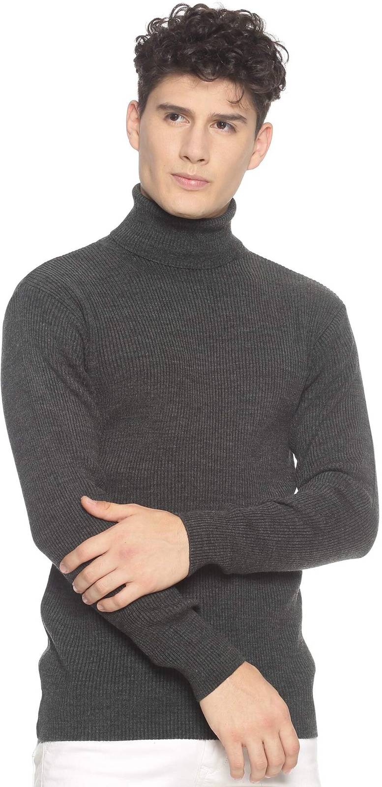 513 Solid Turtle Neck Casual Men Grey Sweater