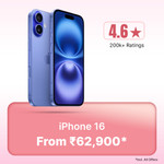 iPhone 16. With its sleek look and numerous features, the phone is an ideal combination of style and substance. The device is available with 128 GB ROM, ensuring that you can enjoy faster response for smooth operations. Moreover, the high ROM also helps you to store various apps and files without any hassle. Check out the iPhone 16 in India with a 48 MP + 12 MP rear camera setup so that you can capture the special moments of your life with clarity. Moreover, if you often take selfies, this device can also have an additional appeal for you. With its 12 MP front camera, you can take stunning self-portraits. The iPhone 16 offers ease of use for both professional and personal needs, as it is built for the Apple Intelligence AI. So, read the product descriptions of the device carefully to learn more about the iPhone 16’s price and features. Accordingly, you can add the phone to your virtual cart and proceed to place an order for the iPhone 16 online. This way, you can get the iPhone 16 delivered right to a location of your choice.