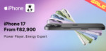 Apple iPhone Air comes with ProMotion technology. It is sharp, vibrant, and fluid, ideal for streaming, gaming, and browsing. With the Always-On display you can see important notifications without draining the battery. Made with strong titanium frame, it has Ceramic Shield Protection front and back, best combination of slim and sturdy. The powerful A19 Pro Chip comes with a 6-core CPU, 5-core GPU, and 16-core Neural Engine, optimised for performance. The iPhone Air comes with a front 18MP Center Stage camera, making video calls and selfies smooth with tap to zoom, and dual capture. On the back, the 48MP Fusion Camera System is designed to deliver super high-resolution photos, portraits with focus control, and 4K Dolby Vision videos at 60fps. It comes with a 27-hour video playback battery life, Apple intelligence, MagSafe charging and large storage capacity options of 256GB, 512GB, and 1TB.