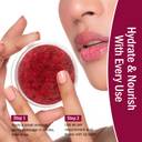 Owing to its powerful formulation, this lip scrub offers exceptional benefits for your lips. Moreover, the sugar crystals naturally buff away dead skin while the blend of butter and oils soften your lips, leaving them visibly smooth and plump. Furthermore, this lip scrub provides velvety hydration and is enriched with antioxidant-rich botanicals, as well as an anti-wrinkle peptide, which promotes youthful-looking lips. Also, it helps reduce pigmentation and tanning, deeply nourishes and hydrates the lips, repairs chapped and cracked lips, restores the natural tone of the lips, improves blood circulation, and fades nicotine stains.