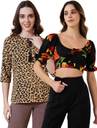 Pack of 2 Casual Regular Sleeves Printed Women Gold Top